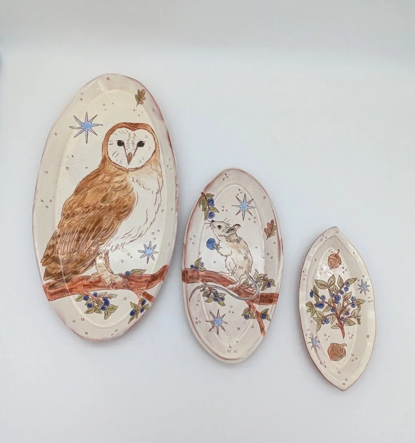 “I have been using the potters wheel since high school, continuing to focus on it throughout community college at FLCC. The largest increase in skill, exposure, and experience though, was attending Nazareth Univeristy (2007-2009), focusing fulling on ceramics and sculpture under Mitch Messina. After college, I took a long break from ceramics for a bit of a life detour, and around 2022 came back to it with a renewed sense of passion for wheel throwing. I'm now the studio tech for Jason Ferguson's community studio in the Corn Hill area, and create all my work out of that space.”